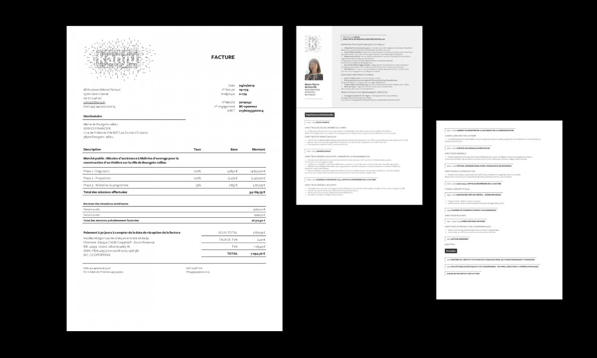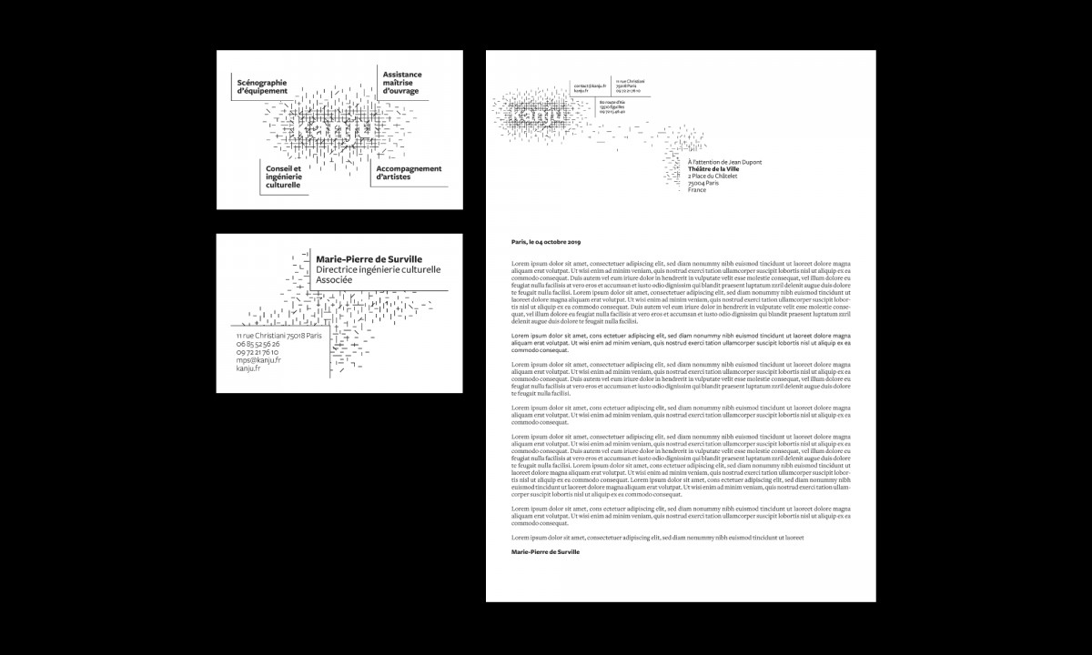 Identité visuelle globale pour Kanju : scénographie d'équipement, assistance à maîtrise d'ouvrage, ingénierie et accompagnement d’artistes. Conception et développement du site internet administré par l'équipe de Kanju.